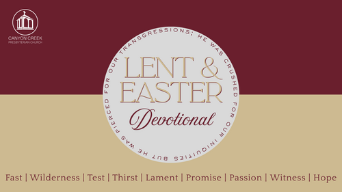 Several members of Canyon Creek wrote a Lent and Easter devotional to help you meditate on the death and resurrection of Jesus Christ. Lent is a forty-day season of preparation and repentance, beginning on Ash Wednesday and leading to Good Friday, the day Jesus was crucified. Easter Sunday is the day Jesus rose from the dead, and it is followed by a season celebrating the resurrection hope we have in Christ. Pick up this devotional at the church or download it here.