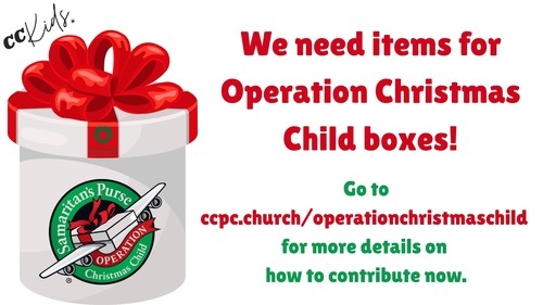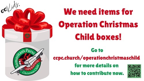 We'll be packing Operation Christmas Child shoe boxes for children in need around the world - at our annual packing party this fall on October 19th. We want to send these gifts to even more kids this year! So, we need your help before the packing party! Purchase items for boxes and bring those items to the church. Click on the link for a list of items to purchase for the packing party. Thank you for being a part of this mission!