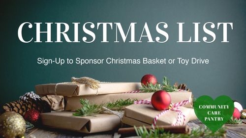 The Community Care Pantry is collecting items for Christmas Dinner Baskets and a Toy drive to support the families of the Community Care Pantry this Christmas. Please use the Sign-Up Genius link below to let us know what you will donate. The items can be dropped off on this Monday, December 7th or on next Monday, December 14th, from 12:30 – 1:30 or by appointment. Contact Phyllis Acon or Michelle Kiriakos for more information.