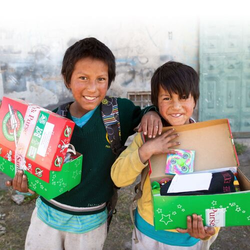 Each year we pack shoebox gifts to be sent around the world to bless children in need. The boxes are sent to more than 100 countries where they share the message of the Gospel and give the children gifts.